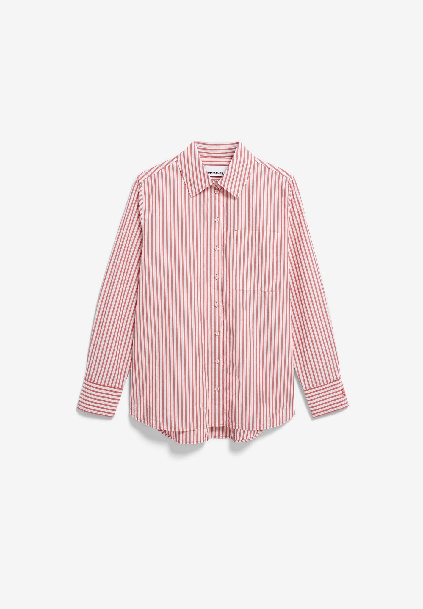 STRIPE LOOSE SHIRT BLOUSE OATMILK-MARS RED